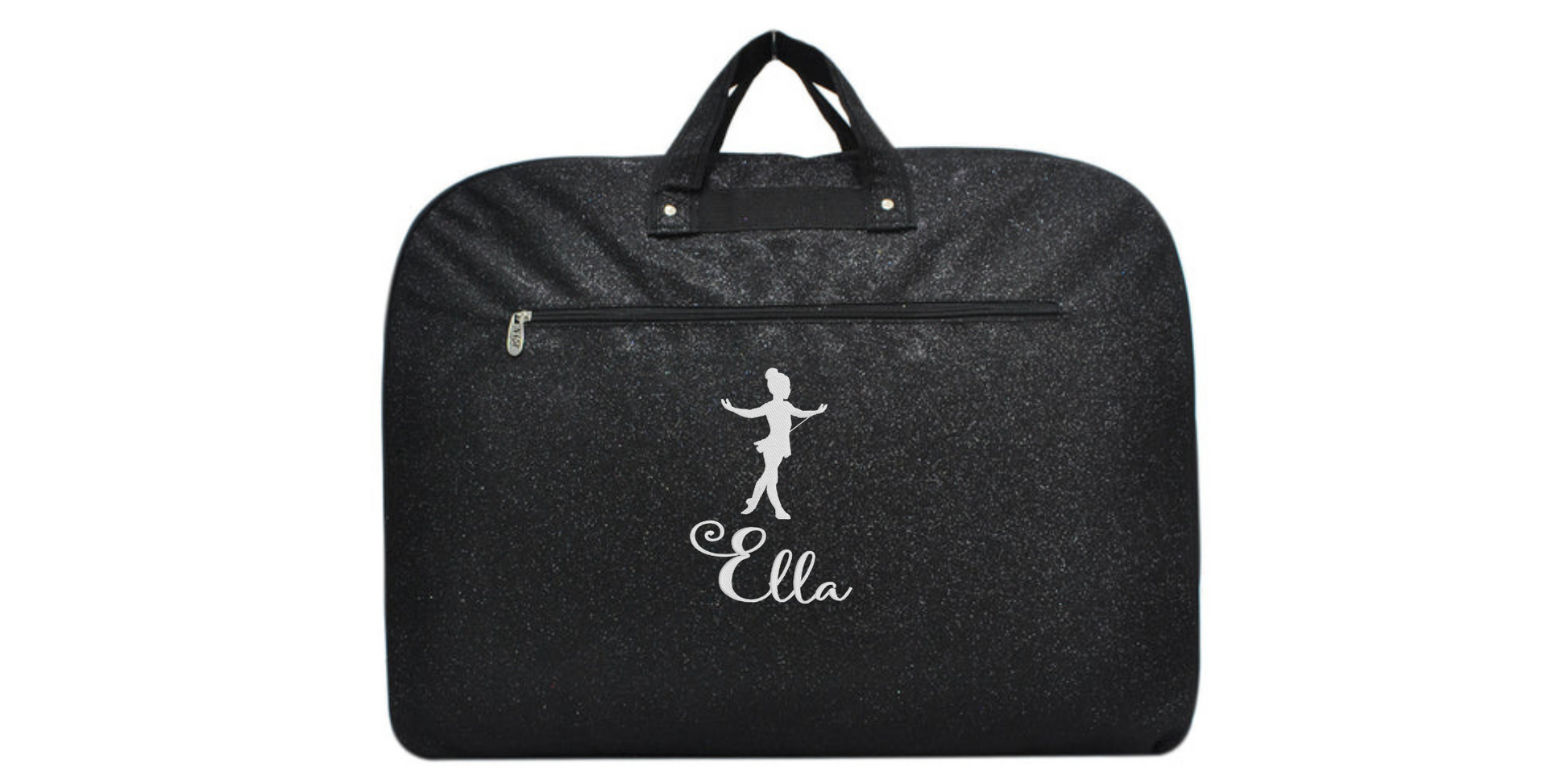 Travel in style with this personalized glitter garment bag! Perfect for dance, cheer, and sports, it offers a sleek design, ample space for multiple outfits, and custom embroidery options. Made from high-quality canvas microfiber, it's the ultimate travel companion for dancers and cheerleaders on the go.