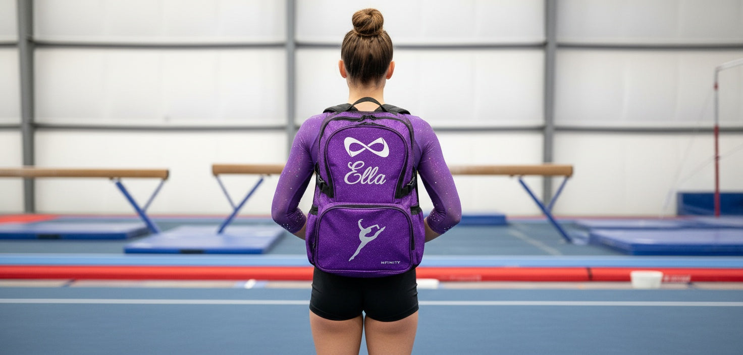 The vibrant purple Nfinity Sparkle Glitter Backpack is designed for aspiring dancers, featuring a stunning embroidered dancer leap design and personalized name option. Known for durability, this backpack is perfect for practices, classes, and everyday adventures.