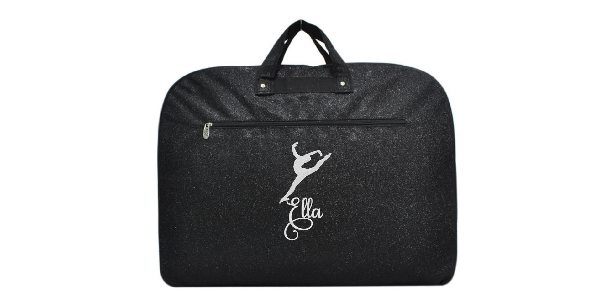 Personalized Glitter Garment Bag with Embroidered Leaping Dancer Design