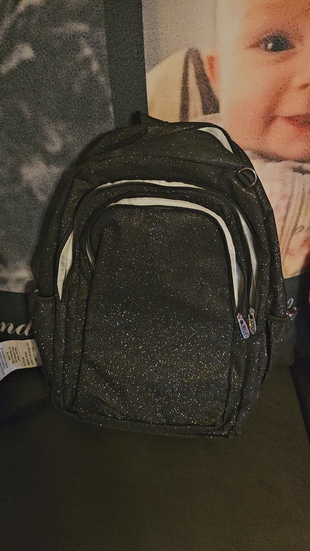 With ample storage, this backpack features three spacious zippered compartments and a convenient front pocket, making it easy to keep your essentials organized. The eye-catching glitter canvas exterior adds a touch of elegance to any outfit, ensuring you look fabulous on and off the field or stage.